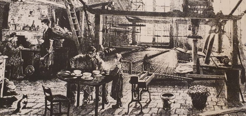 Compte-tenu des dimensions imposantes de ce métier à tisser, on a donc construit des ateliers logements dont les pièces d’une hauteur de quatre mètres étaient dotées de hautes fenêtres pour faire entrer la lumière et de plafonds renforcés de grosses poutres en chêne.