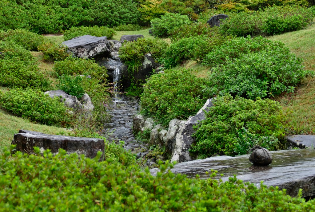 Notre visite se poursuit, sous la pluie, dans un jardin Isuien, jardin japonais traditionnel créé au 17e siècle par un riche marchand. Ce jardin dévoile l’art de l’aménagement des jardins japonais à la recherche de l’équilibre, de l’harmonie et de l’hommage à la beauté de la nature.
