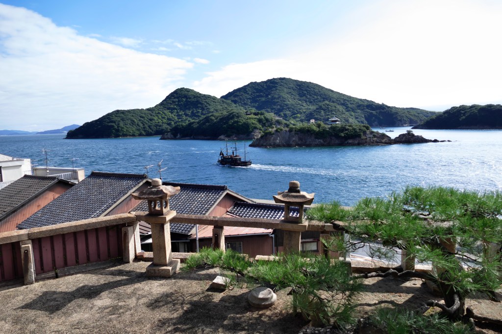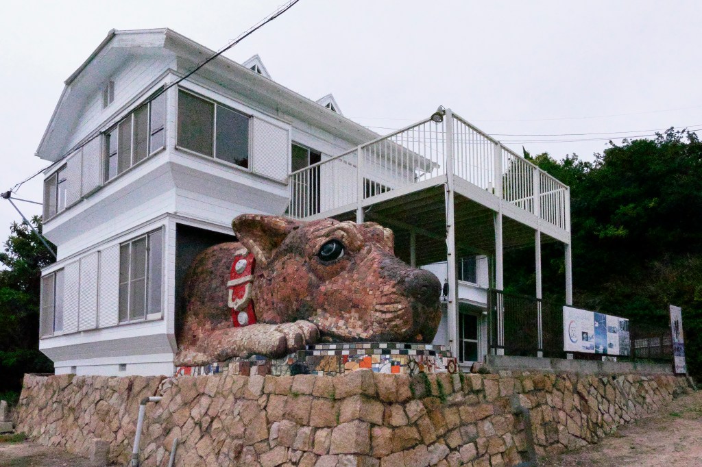 Nous nous rendons ensuite à Kobe afin d’embarquer sur le navire pour la croisière en mer de Seto, mer intérieure au sud du Japon. La première escale a lieu dans l’île d’Inujima, musée d’art contemporain à ciel ouvert. Il comprend notamment un centre d’art construit dans une ancienne usine d’extraction de cuivre et diverses œuvres d’art contemporain dispersées dans l’île, dont l’étonnante « Maison chien ». L’île comptait une trentaine d’habitants en 2020.