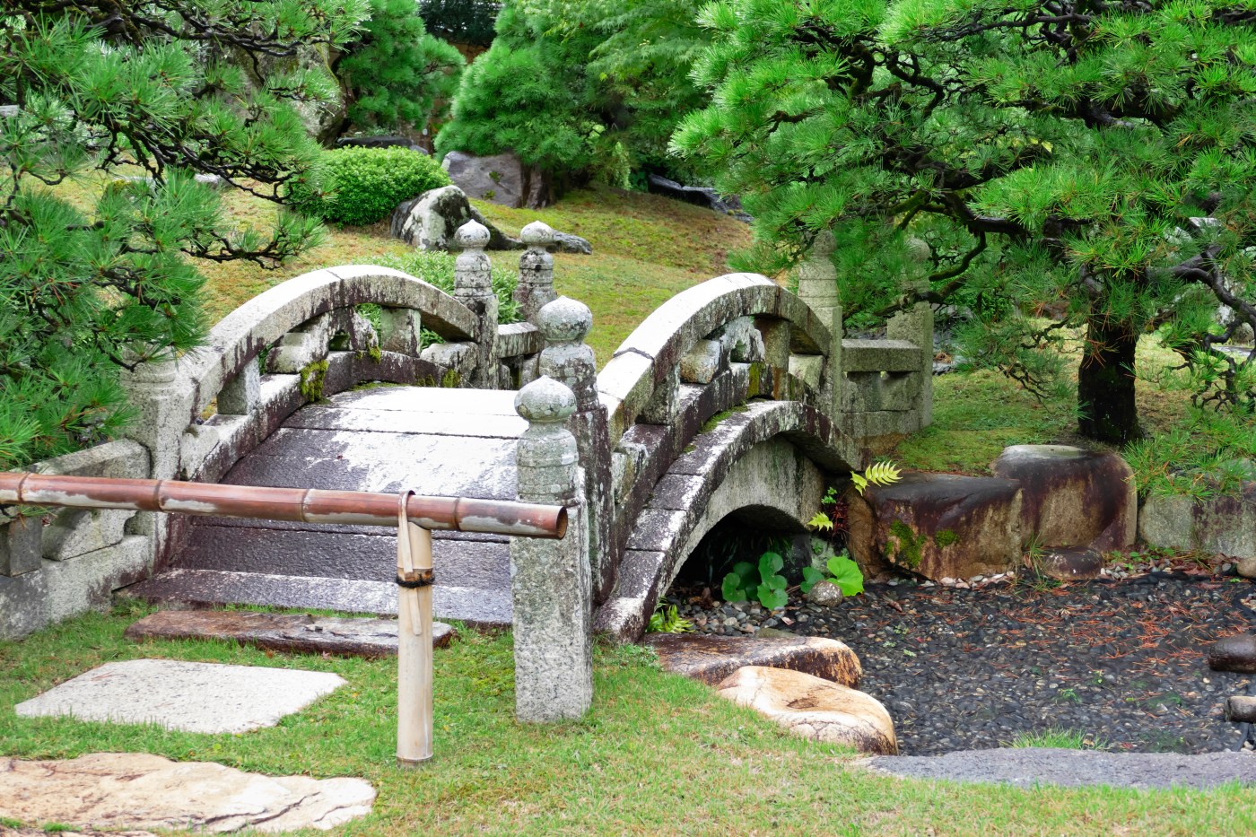 Notre visite se poursuit, sous la pluie, dans un jardin Isuien, jardin japonais traditionnel créé au 17e siècle par un riche marchand. Ce jardin dévoile l’art de l’aménagement des jardins japonais à la recherche de l’équilibre, de l’harmonie et de l’hommage à la beauté de la nature.